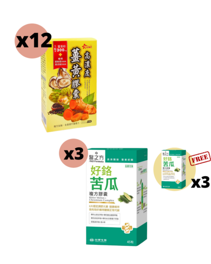 新台研薑黃膠囊 (30粒)x12 Box + 好鉻苦瓜複方膠囊 (45粒) X3 Boxes RM2,223.00
