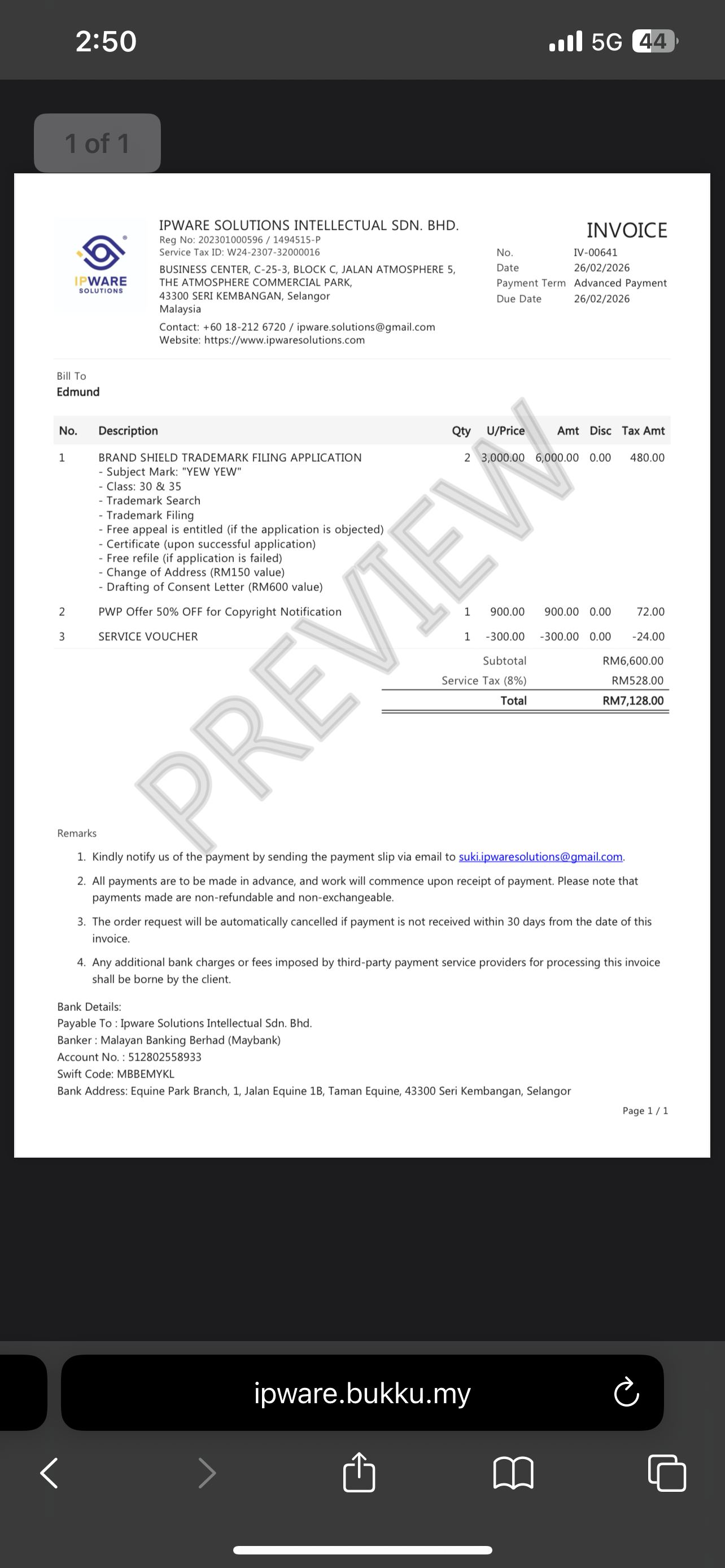– Drafting of Consent Letter (RM600 value)