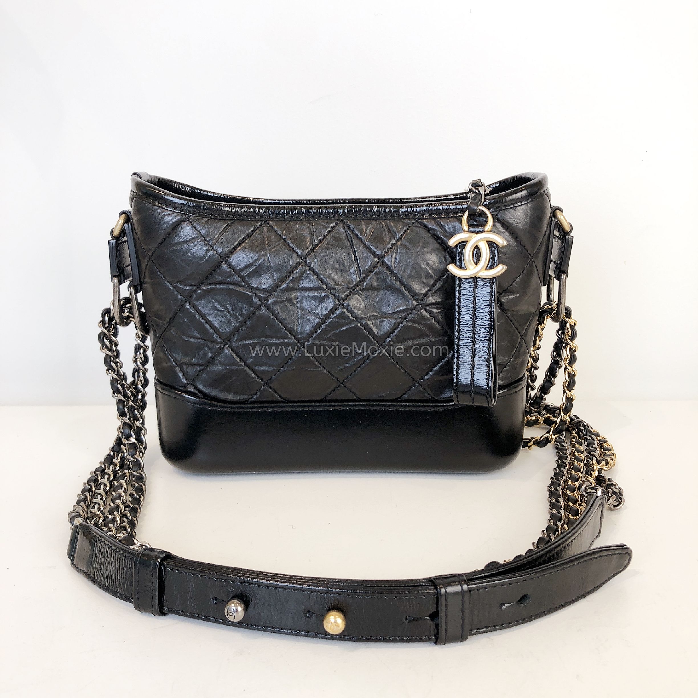 CHANEL Small Gabrielle Hobo Bag In Black Aged Calfskin – Tri Tone Hardware (30 Series – Year 2020)