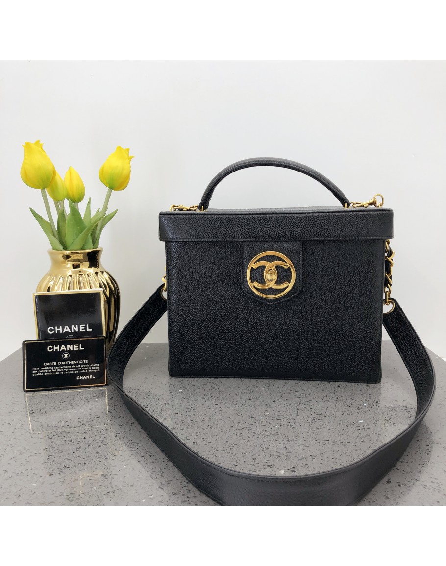 CHANEL Vintage Medium Vanity Case Handbag with Shoulder Strap – GHW