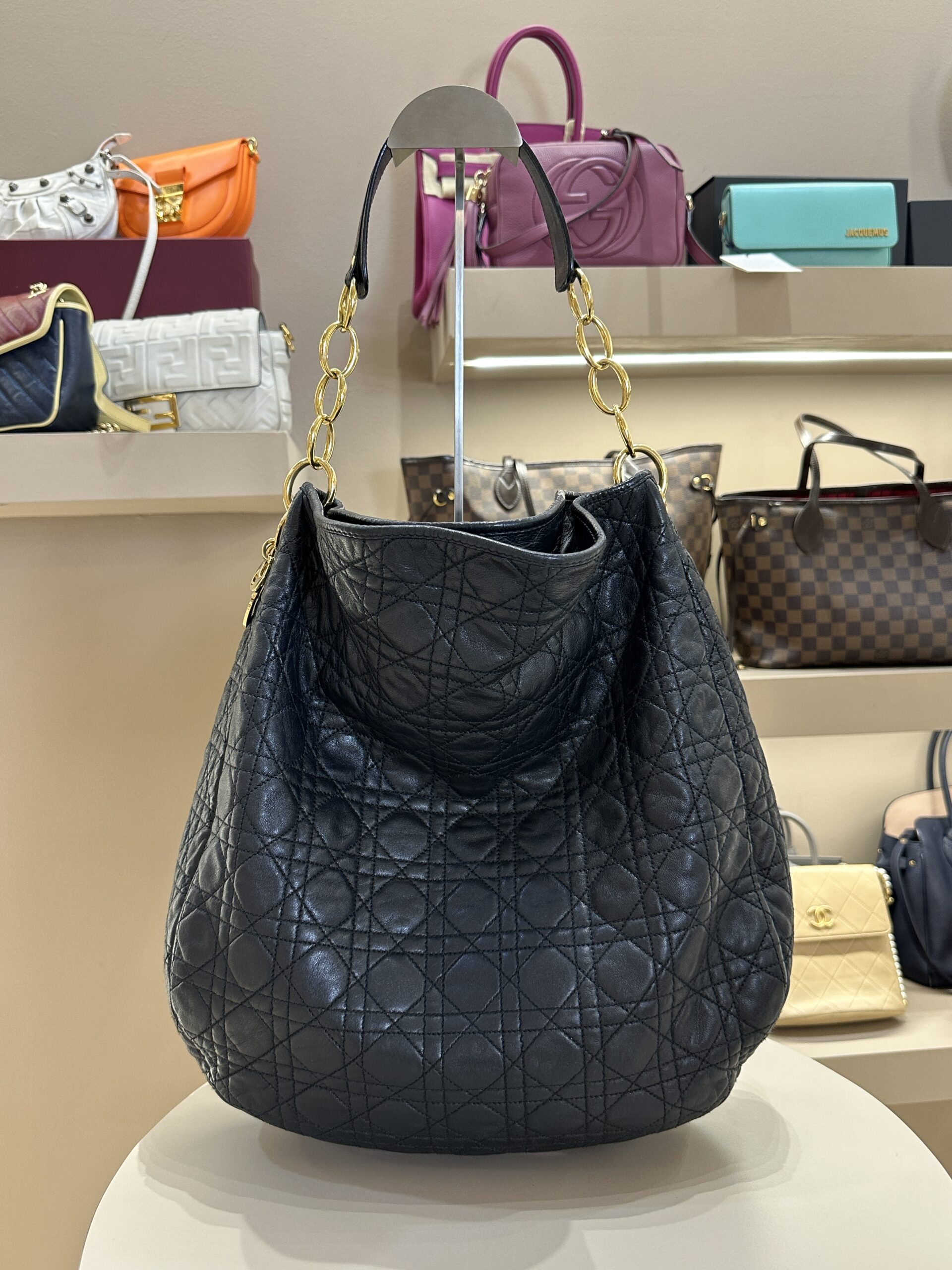 Home Fashion CHRISTIAN DIOR CANNAGE HOBO SHOULDER BAG BLACK