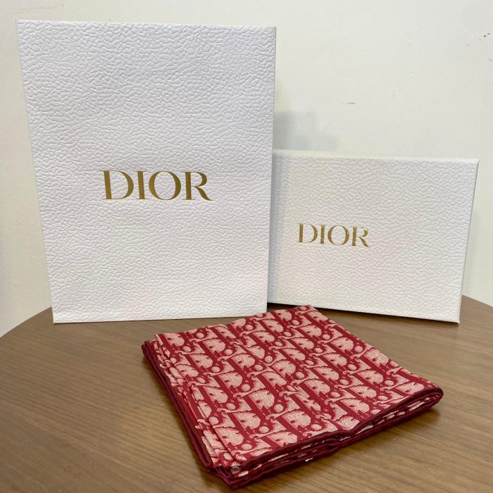 CHRISTIAN DIOR Red Oblique 100% Silk Scarf