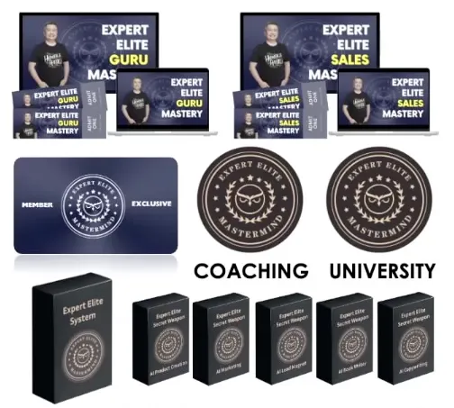 Guru Mastery – $8,000 value Sales Mastery – $8,000 value Inner Circle – $6,000 value Coaching – $12,000 value University – $12,000 value Secret Weapon – $10,000 value Expert Elite System – $10,000 value