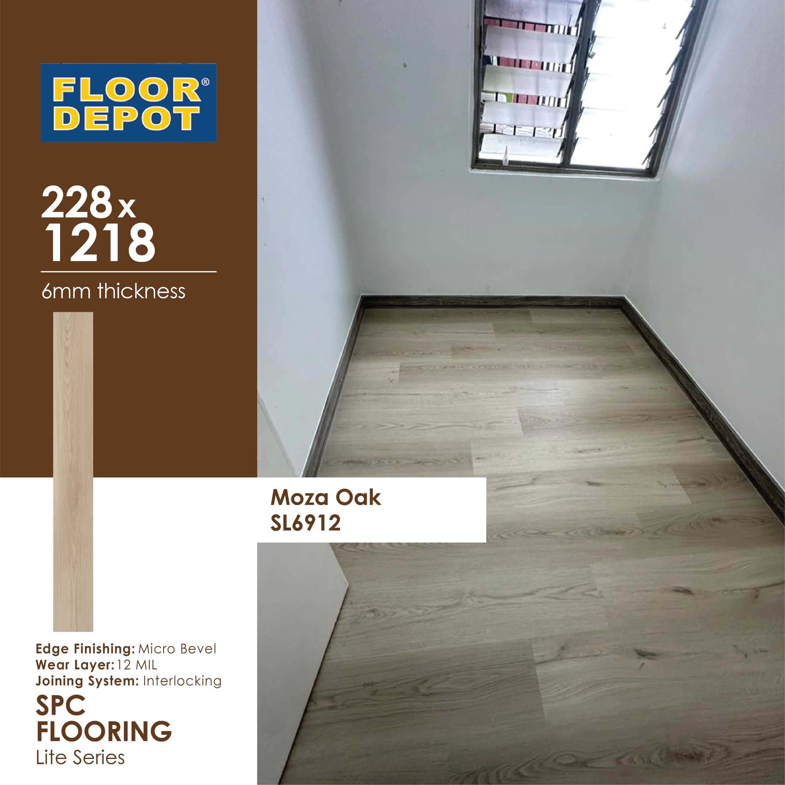 FLOOR DEPOT / SPC FLOORING / LITE SERIES / 6MM / SL6912 MOZA OAK