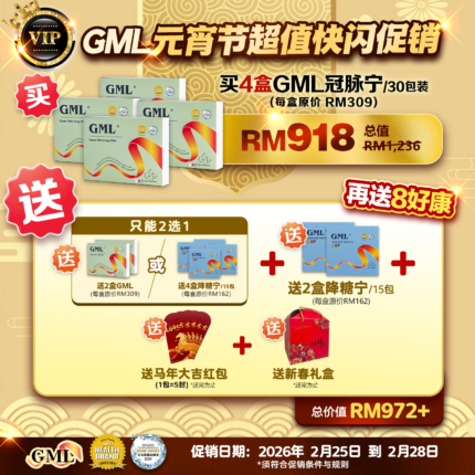 GML VIP Lantern Festival Flash Sale (1 Set) + Add-ons 50% Off: Choose Any 1 Option (4 Boxes Jiang Tang Ling / 4 Boxes An Gan Ning / 4 Boxes Shu Yao Ning)- East Malaysia GML VIP 元宵节超值快闪促销(1套),另加其一(4盒降糖宁/4盒安肝宁/4盒舒腰宁)-东马