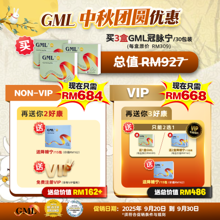 GML VIP Mid-Autumn Festival Promo: GML Guan Mai Ling 3 Box + Free 2 Box Jiang Tang Ling +Free 1 Box Jiang Tang Ling GML VIP 中秋团圆优惠:GML冠脉宁3盒 + 送2盒GML降糖宁 +送多1盒降糖宁