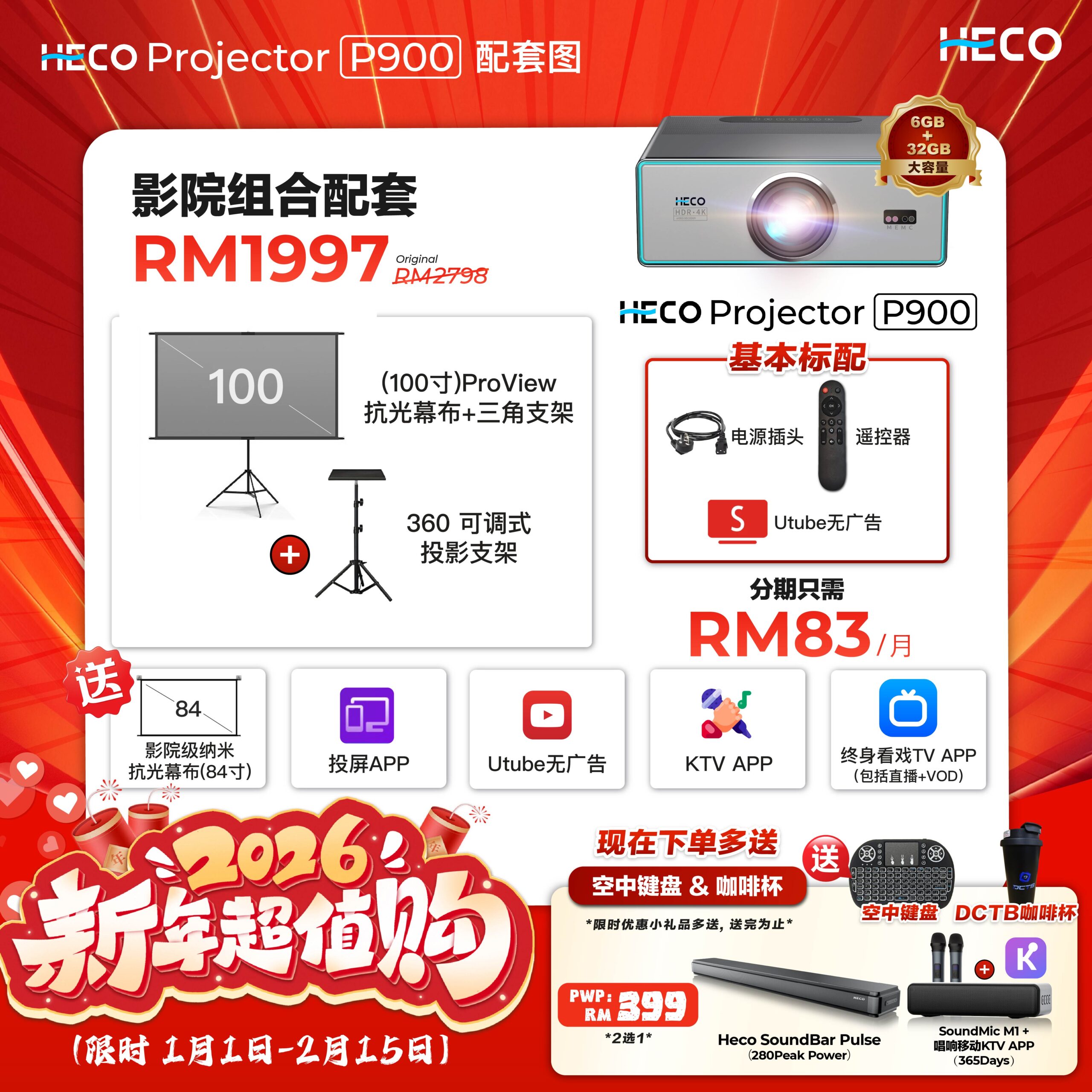 Heco Projector P900 CNY 2026 (Cinema Combo Package PWP RM399)