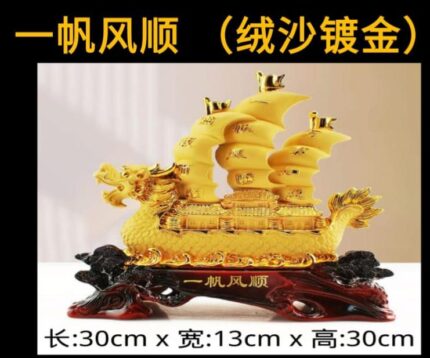 【Feng Shui Interpretation of 一帆风顺】 Literal Meaning: “One sail, wind smoothly” — a sailing boat moving forward with favorable wind. ? Symbolism in Feng Shui: Smooth progress in life and career The boat sailing smoothly represents a person’s journey in life without obstacles, with supportive energy all around. Prosperity and good fortune Often associated with career success, business ventures, or new beginnings, this phrase is used to bless a person with steady advancement and success. Elemental Connection: The boat represents movement (Water element), symbolizing flow and progress. The wind represents helpful people and opportunities (Metal element, associated with benefactors/贵人). ?️ Feng Shui Applications: Decor Placement: Sailing boat figurines or paintings of a ship with full sails are placed in homes or offices (especially near entrances or in the wealth direction) to activate smooth energy flow. Always position the boat sailing inward, never outward — this symbolizes wealth and good luck coming in, not going out. Blessing Phrase: Used in Fengshui blessings, especially during new ventures, housewarming, or career promotions, to invoke good luck and a smooth journey ahead.