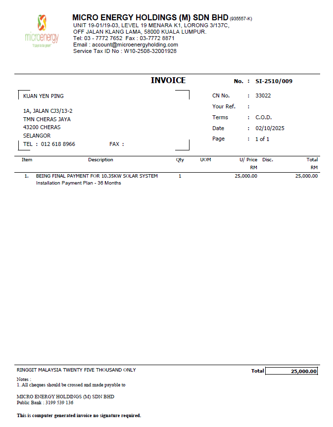 MICRO ENERGY HOLDINGS – Solar Installation Package