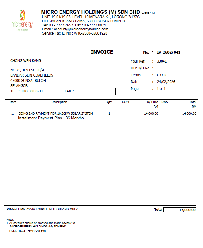 MICRO ENERGY HOLDINGS – Solar Installation Package