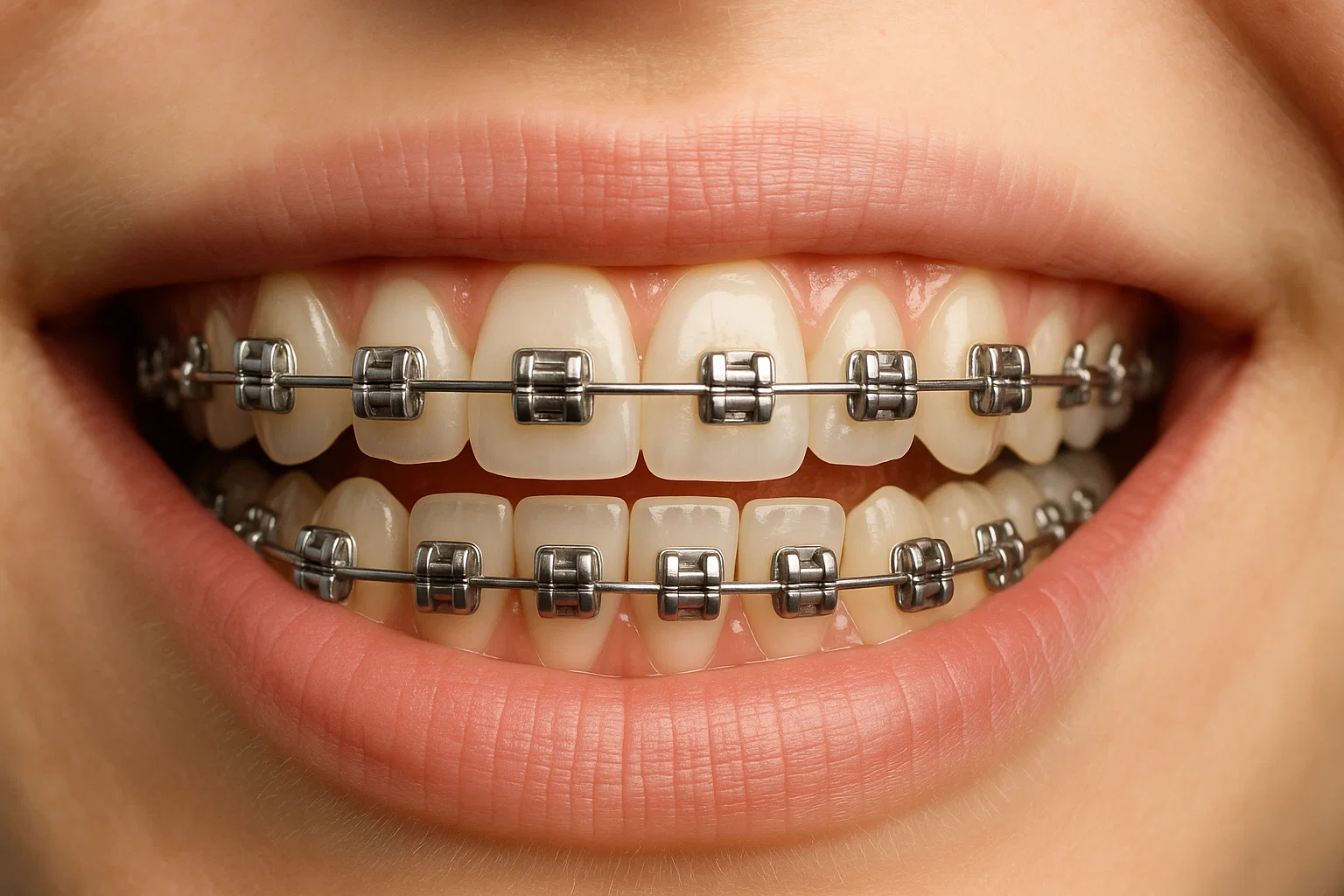 Dental orthodontic treatment to align teeth.