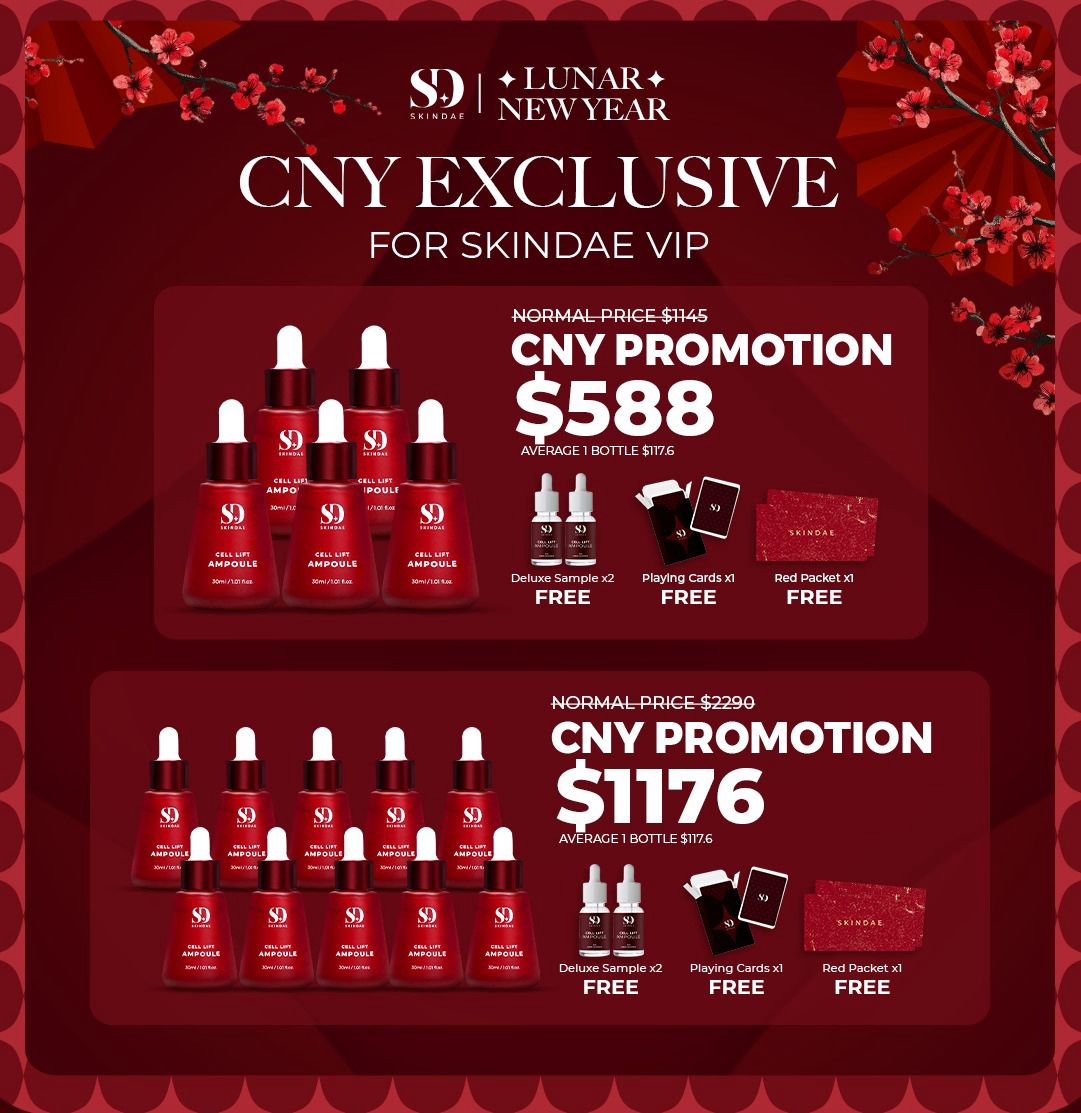 Skindae Ampoule – 10 bottles Skindae Ampoule, free Skindae Ampoule Deluxe Sample x 2 bottles, free playing card x 1, free red packet x 1