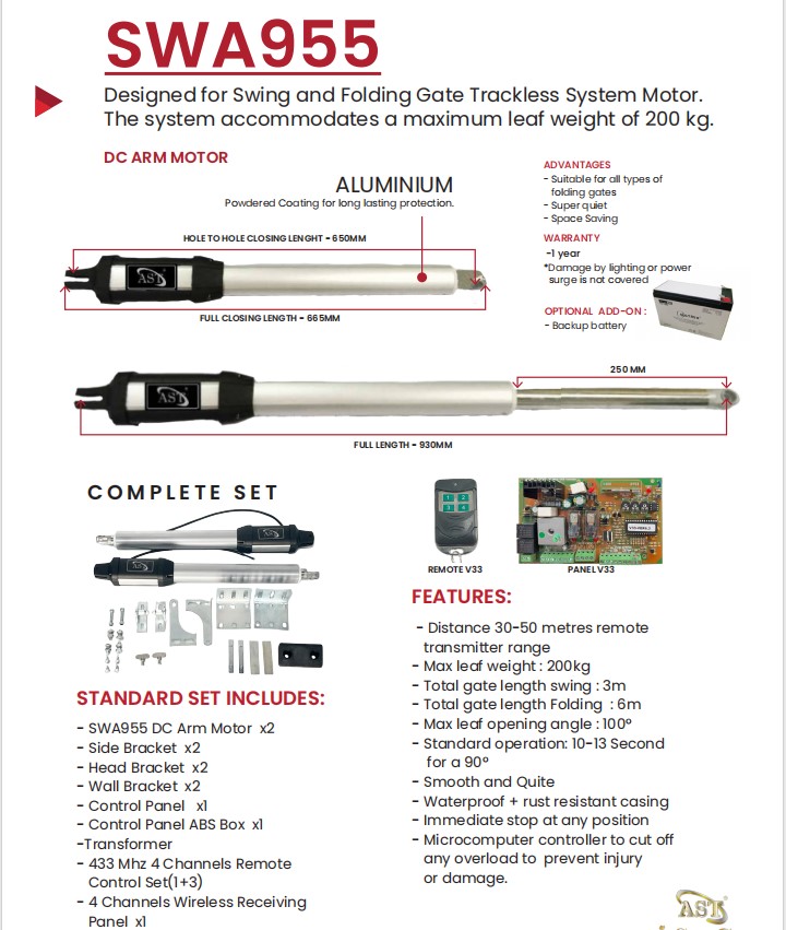 SWA955 Arm Auto Gate System Complete Set