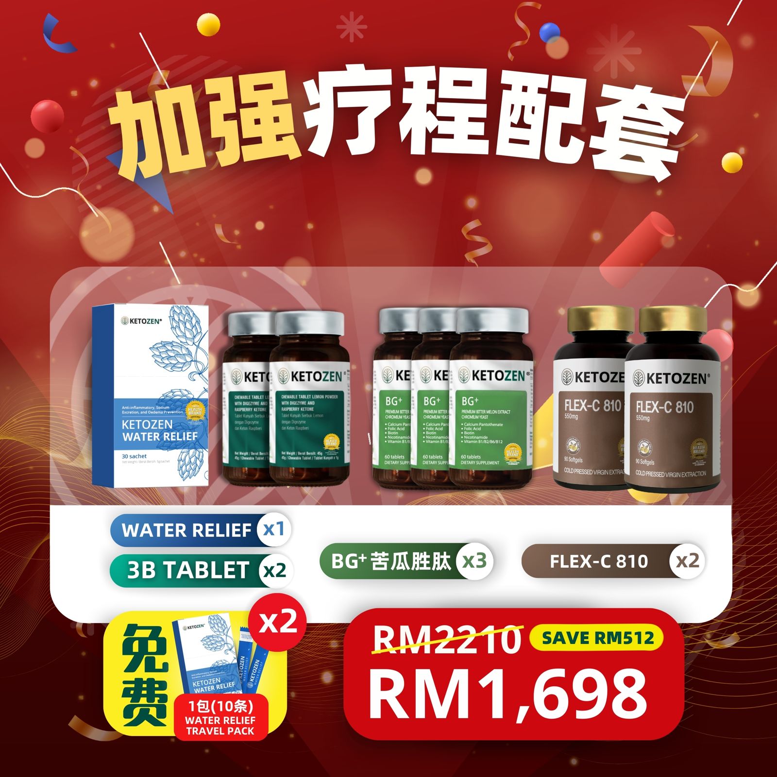 1 Box Water Relief 2 Bottles 3B Tablets 2 Bottles MCT Oil 3 Bottles BG +