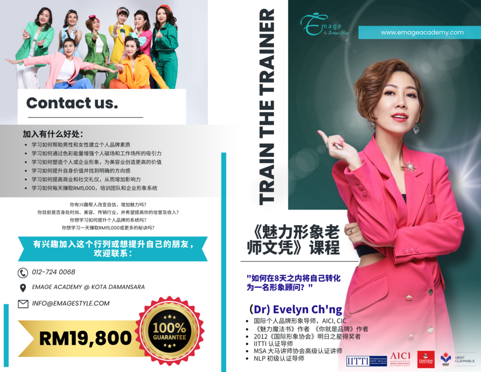 Train The Trainer Professional Image Mastery Certification + 1 Year Golden Circle Coaching (Monthly coaching, 2 Times Personal Shopping Yearly, Tutoring for Social Media IP, Participating in Emage’s Wellness Project, Special VIP in Emage Group)