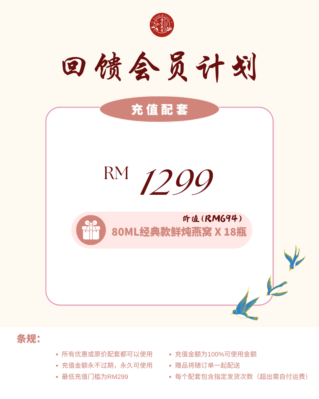 XUE JIA YAN TANG | FRESH STEWED BIRD’S NEST | TOP UP CREDIT RM1299 FREE 18 BOTTLE 80ML CLASSIC BIRD’S NEST
